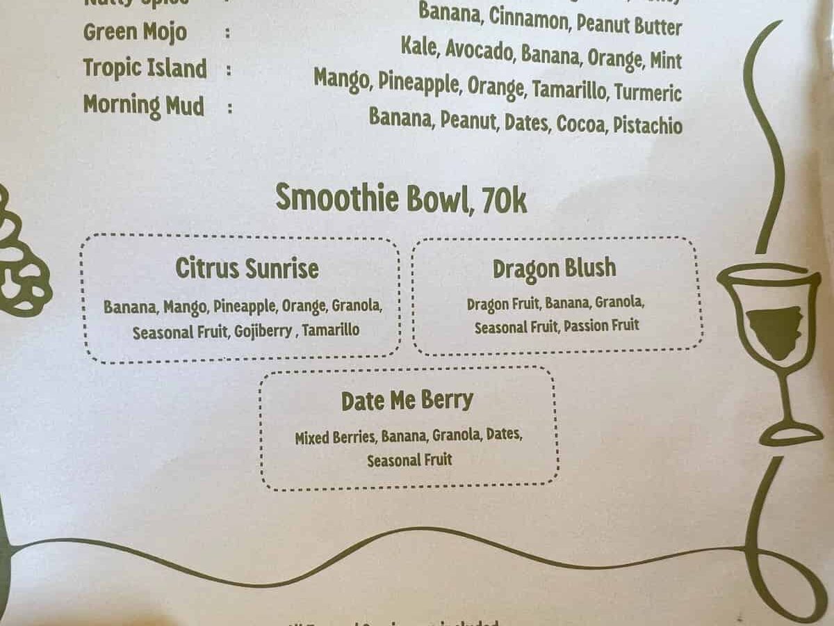 今回はこちらのスムージーボウルのMango Kissを頂きました。